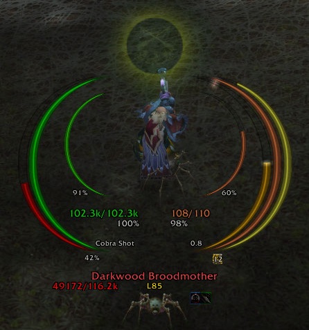 ArcHUD displays smooth arcs around your character in the middle of the screen to inform you about the health and power (mana, rage, ...) of you, your pet, and your target. In addition, it shows casts, combo points, holy power, soul shards, and a couple of other things. It discretely fades when you are out of combat and at full health/power.