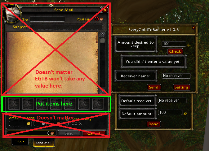- Support items. You only have to add the items you want to send in the default WoW mail frame and it will automaticaly add the postage cost and send the items.