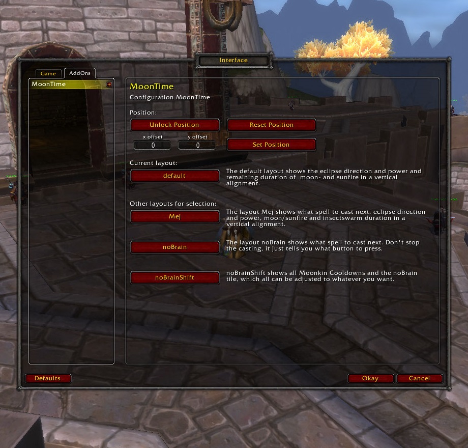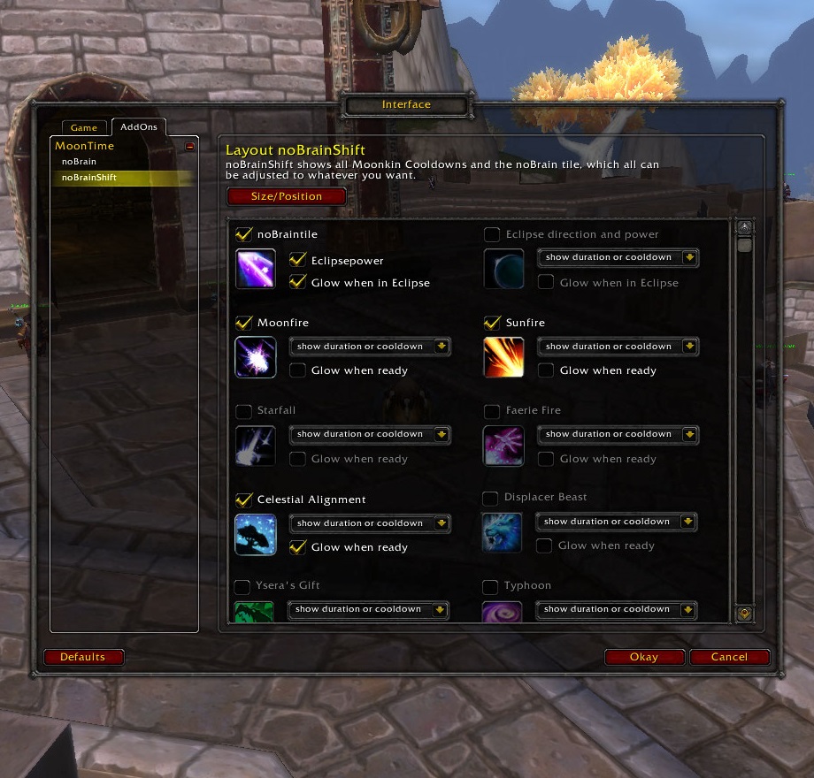 - a free to customize layout, showing all the Moonkin cooldowns/duration wherever you want them on the screen