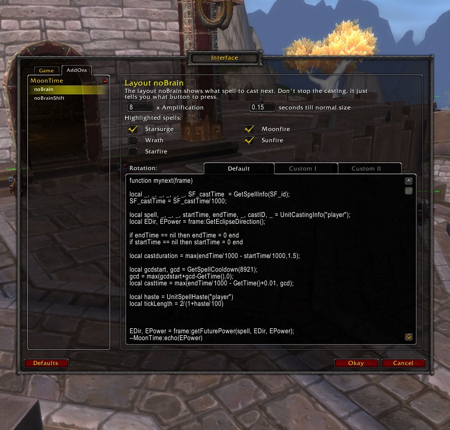 - The default rotation is Starfall > DoTs > SS (only one per Solar) > Starfire/Wrath