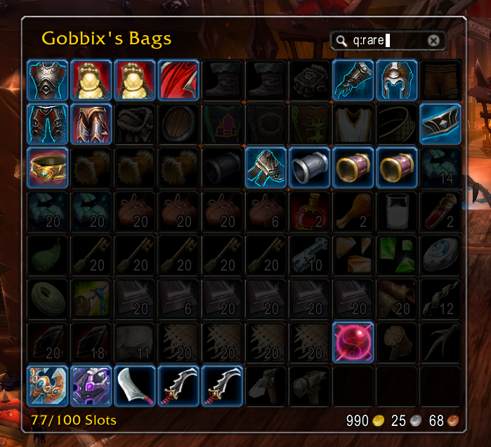 OneBag is a replacement for the default game bags that combines all the bags into one frame.