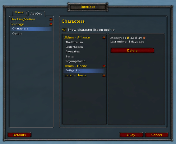 Important: Scrooge requires an LDB-based display addon, such as DockingStation, Bazooka, ChocolateBar, StatBlock, etc.