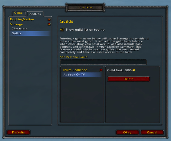 - Ability to track a personal guild bank (i.e. bank alt guild) and consider its gold as a part of your wealth.