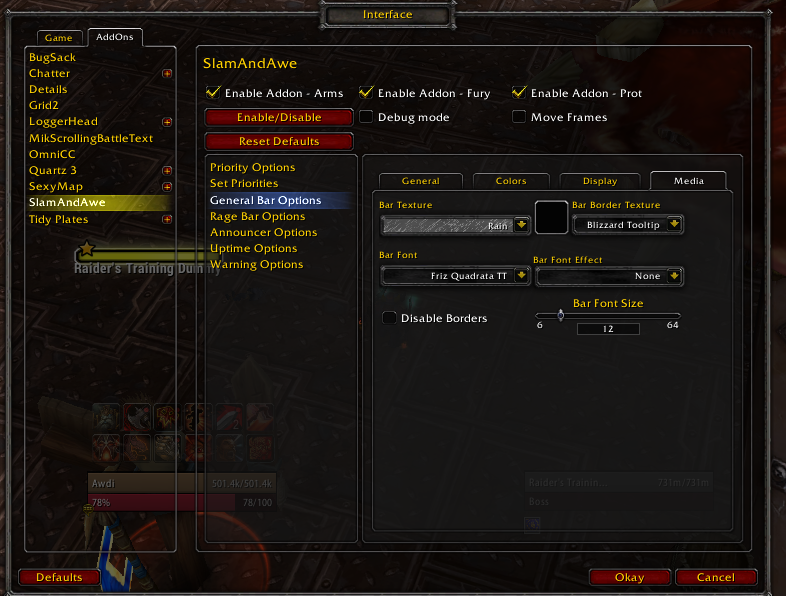 SlamAndAwe is based on the Enhancement Shaman addon "ShockAndAwe", for ALL Warrior specs.