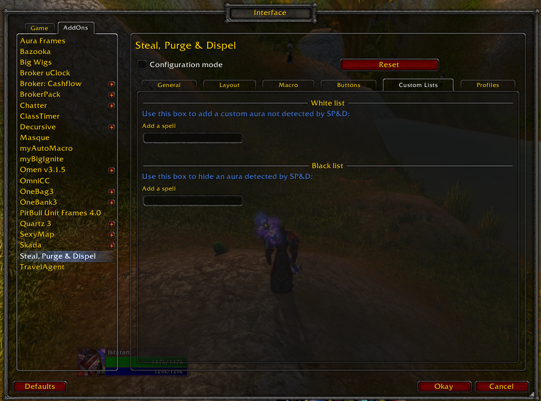 Finally, you can add custom auras to be detected by SP&D or hide auras detected by SP&D in the custom lists tab. Custom aura management tools are also provided.