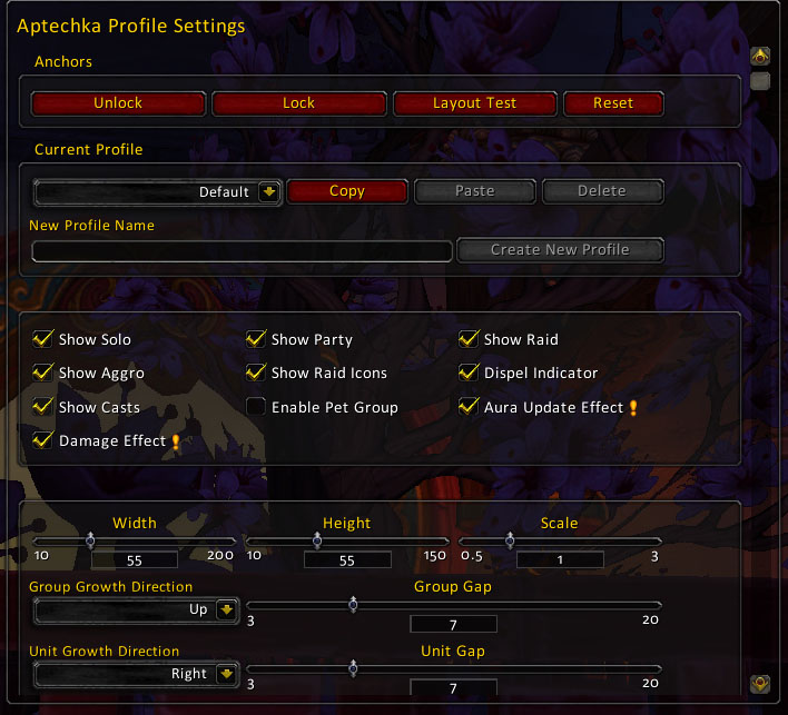 Aptechka is a party/raid frames addon