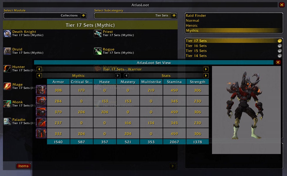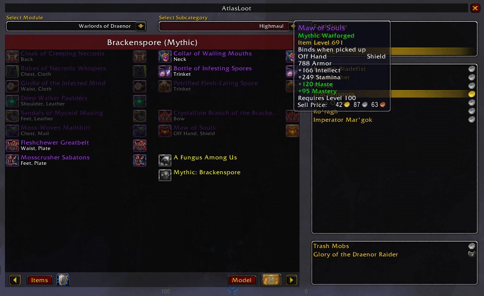 AtlasLoot Enhanced is an UI mod allowing for loot tables of bosses to be browsed whenever needed within the game.
