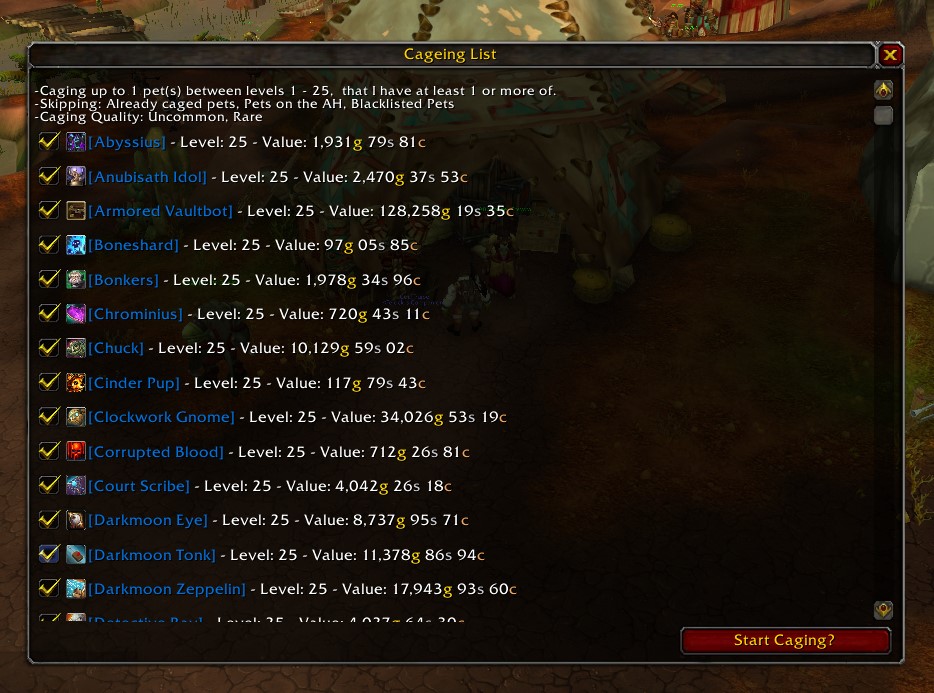 - Now you can automatically cage trade-able pets that match a set of user specified options.