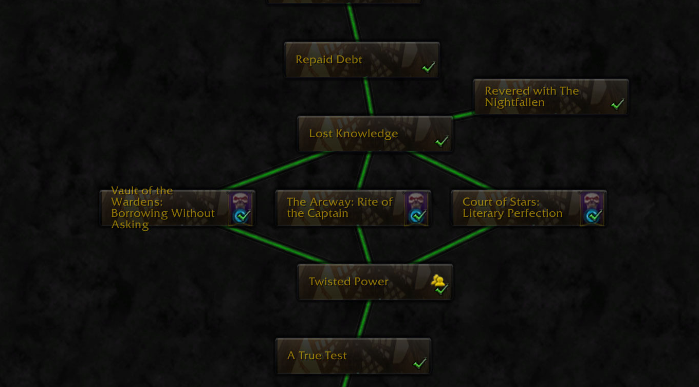 - BtWQuests: Shadowlands contains all leveling zones, covenant campaigns and Torghast unlock (Included by default)