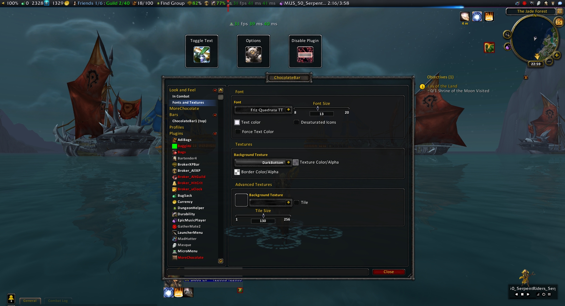 Right click the bar or type "/chocolatebar" to open the options menu.