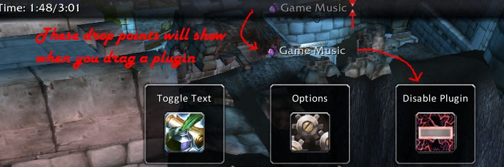 - Easy config, simply drag a plugin and drop points will show. The idea is to easily disable a plugin or toggle its text. See pics.