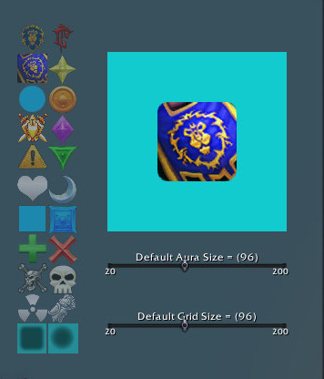 - Move the Aura Size slider to select the default aura size when dragging and dropping spells and items from the spellbook, paperdoll, or bags with a live preview in the upper right quarter of the panel.