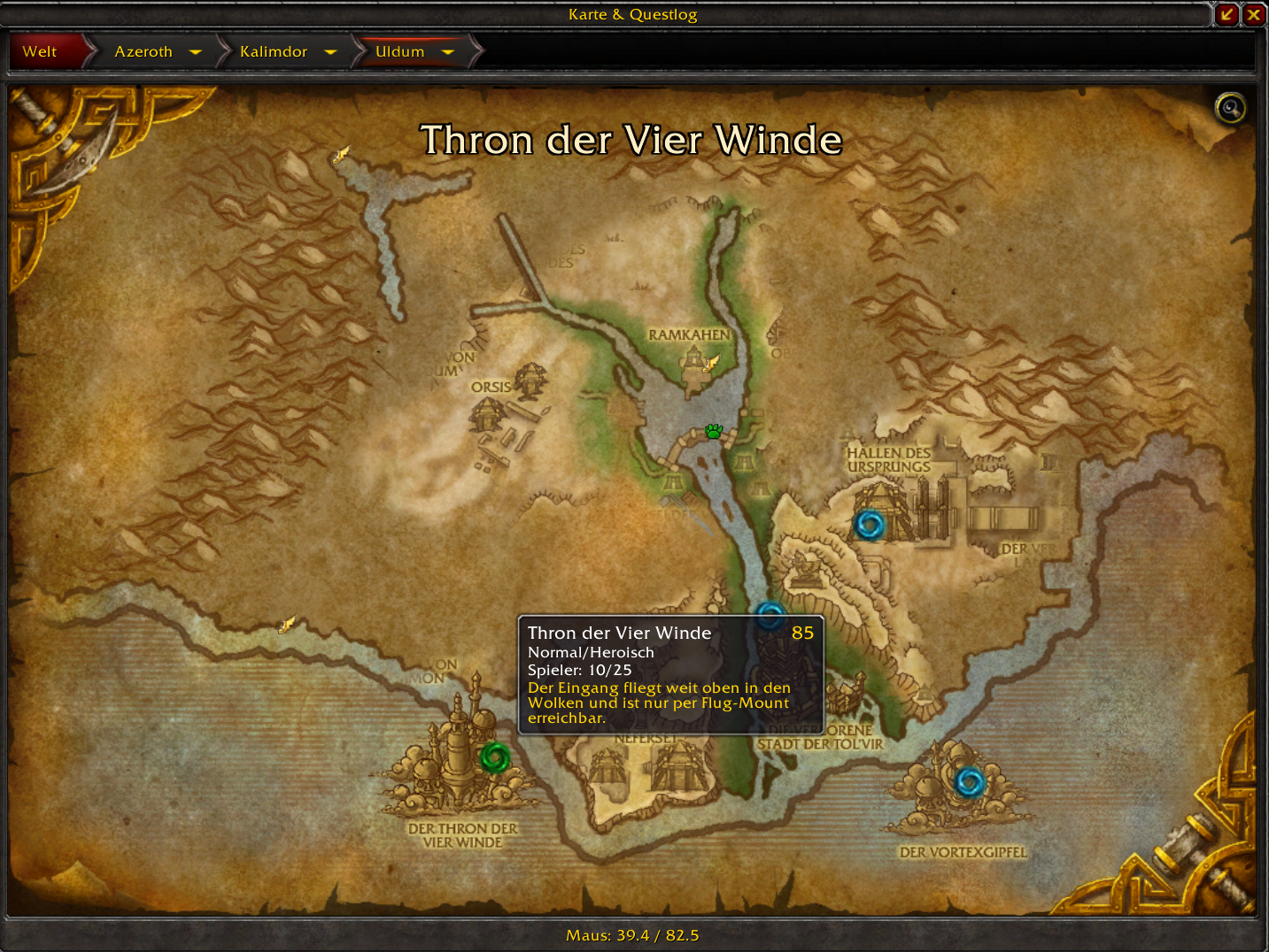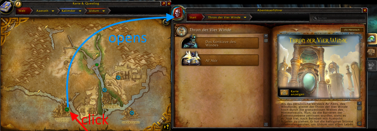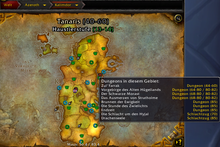 - Shows locations of dungeons and raids on world map
