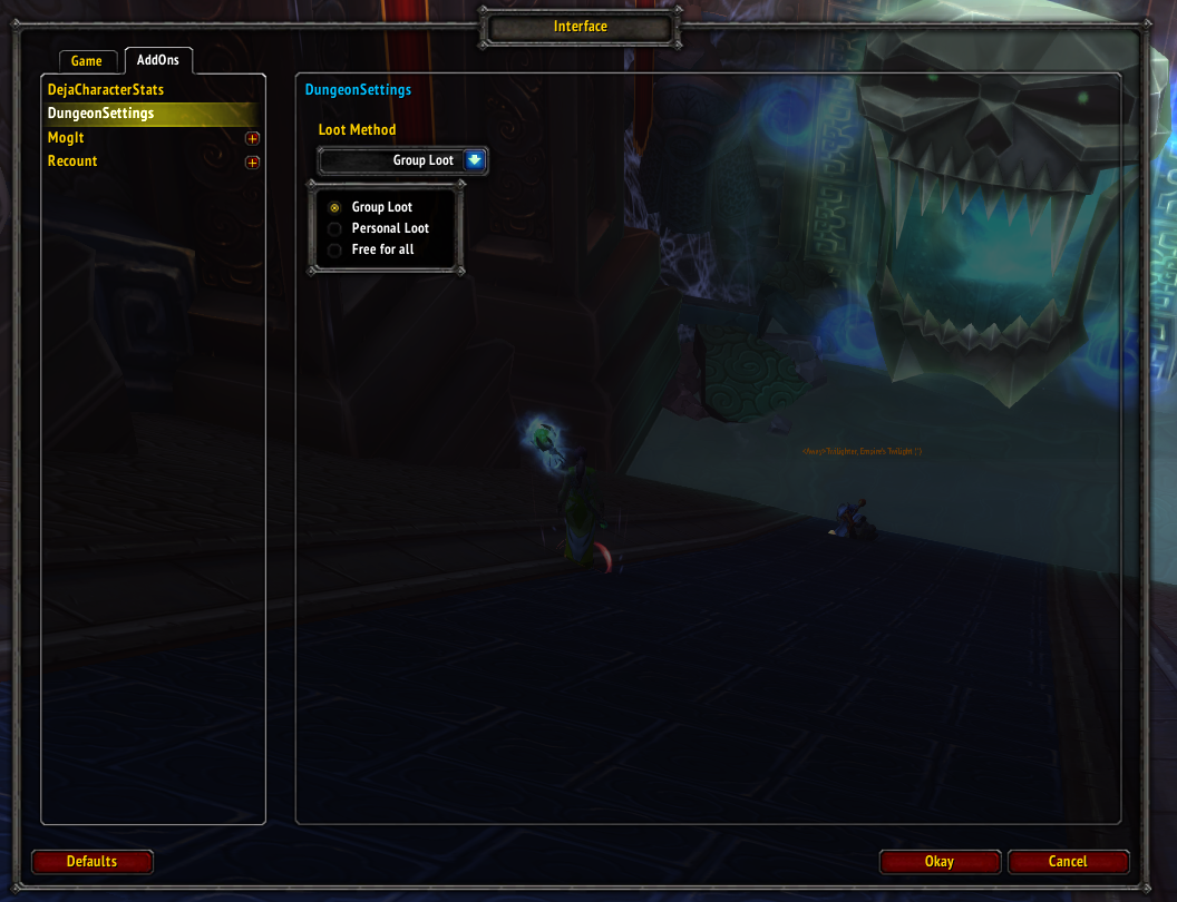 DungeonSettings is an addon for automatisation of some settings valid when in a party/raid group.