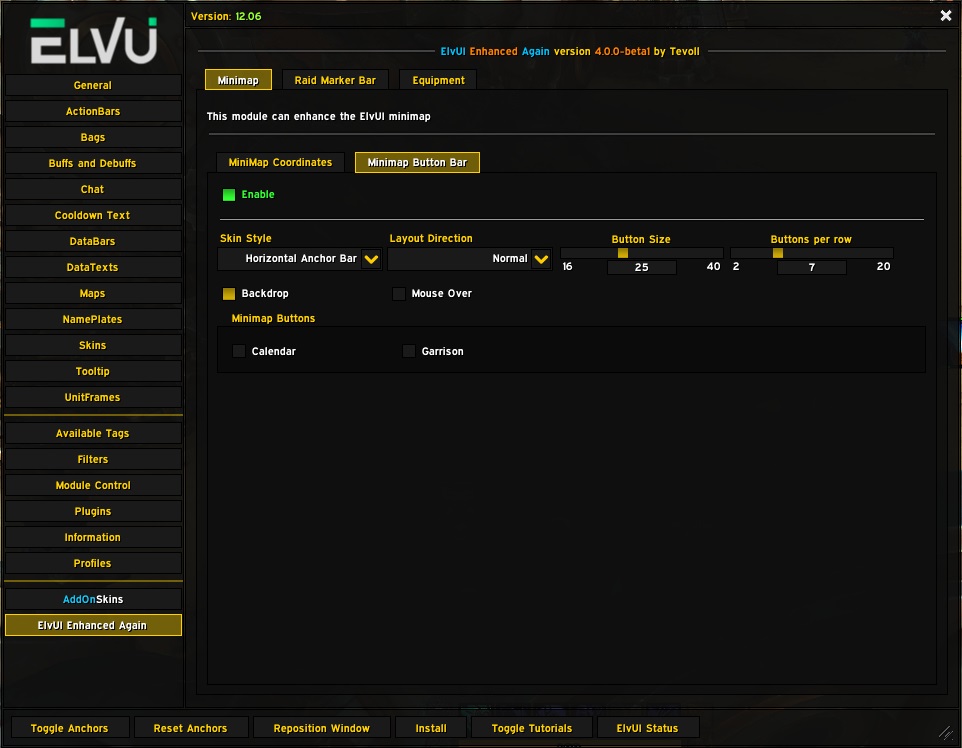 - Own ElvUI Mover group for easy moving of Minimap Button Bar and RaidMarker Bar