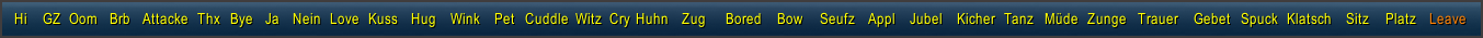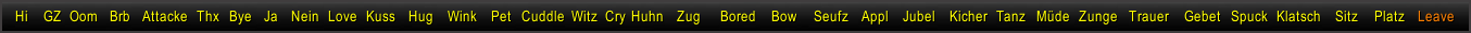 - Feind nähert sich, Oom, Heilmich, Ja, Nein, Thx, Gern geschehen, Zappeln, Müde, Sorry