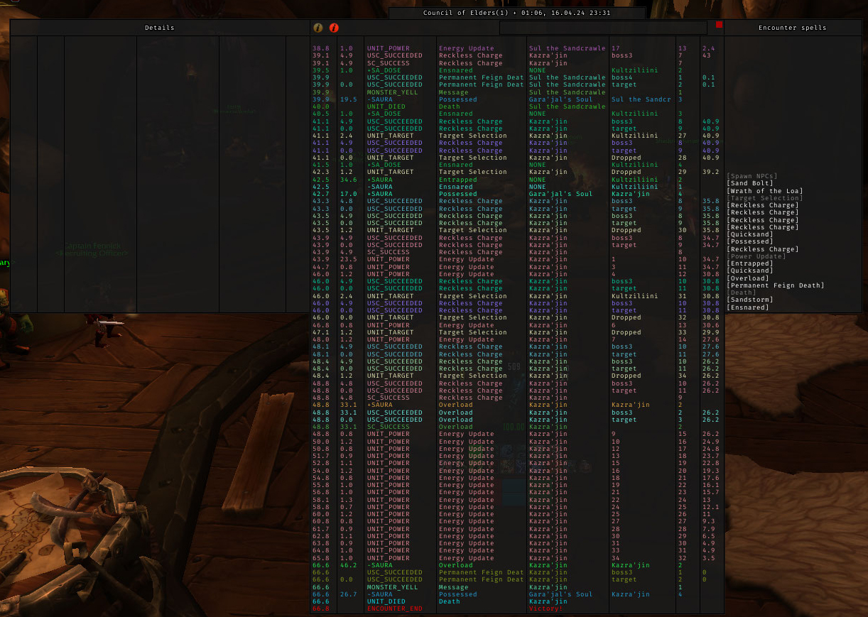 - 4th: spell name (with hyperlink if possible), shift click to paste in to raid chat, click to show it in the details window