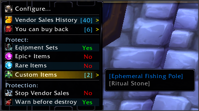 - Automatically stops protected items from being sold (configurable).