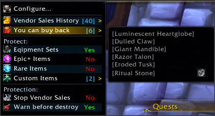 If, like me, you’ve had to have your latest weapon or armour restored by Blizzard because you accidentally sold it or disenchanted it. This is the add-on for you!