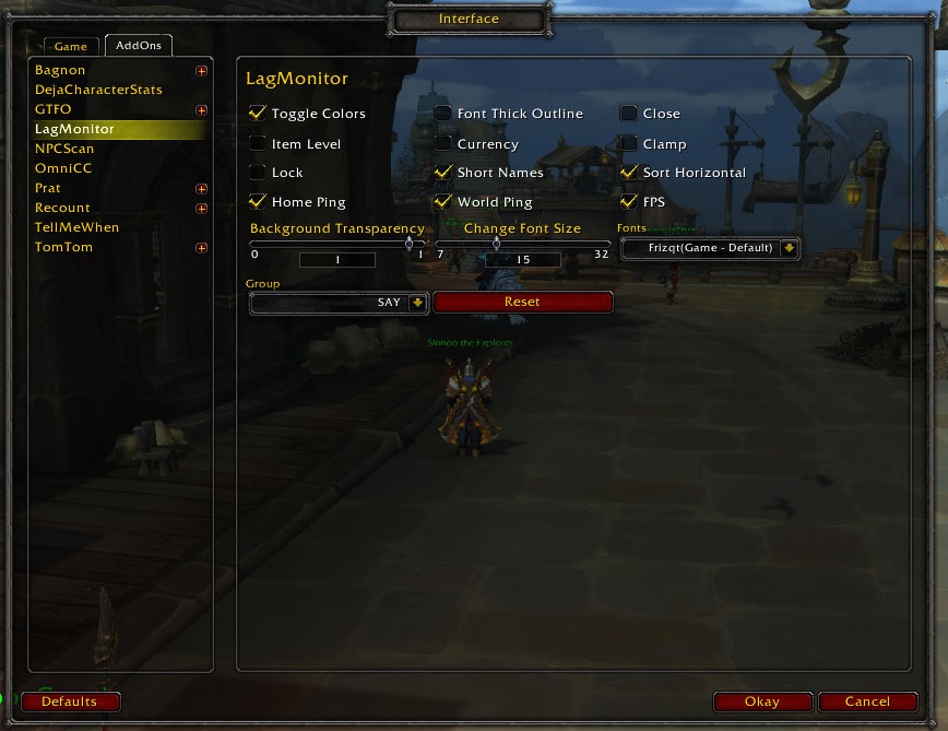 LagMonitor is a growing addon which will not only be used to monitor your network stats but to view various useful information such as your character item level and the amount of gold the character has and soon much much more! There are also a lot of options in the interface panel to customize the addon to your liking with more to be added so be sure to check it out!
