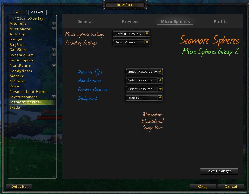 Micro spheres may be added to monitor spell charges or buffs/debuffs, these are displayed along the outer edge of a sphere.