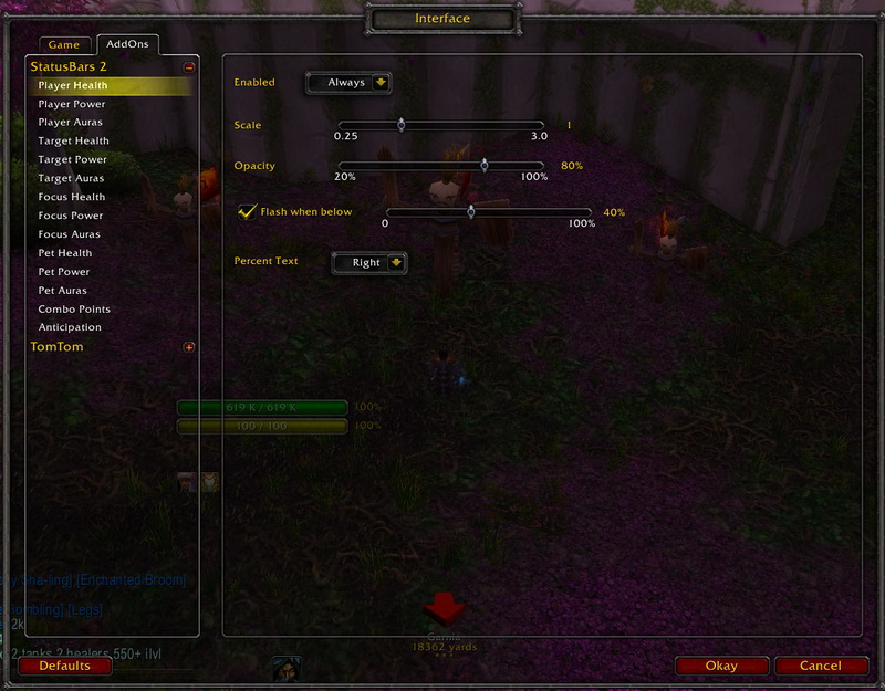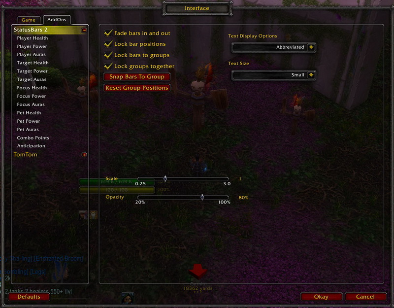 Tired of missing out on the World of Warcraft action because you're always staring at your health bar and power bars in the upper left hand corner? Then StatusBars2 is for you!