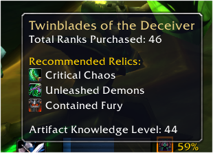 TotalAP provides an all-in-one solution for your Artifact Power needs. It displays relevant information related to your artifact, for all specs, such as the total amount of AP available for use, progress towards the next trait, and more.