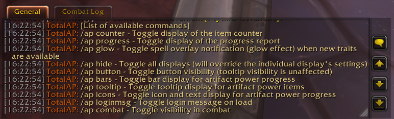 The following slash commands are provided: /totalap and /ap (alias)