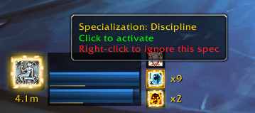 - Clicking the icon for a particular specialization activates it, while right-clicking ignores it and hides the corresponding displays