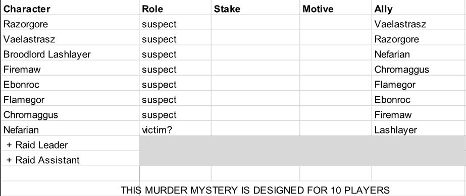 Head into Blackwing Lair with a raid group and enjoy a murder mystery!