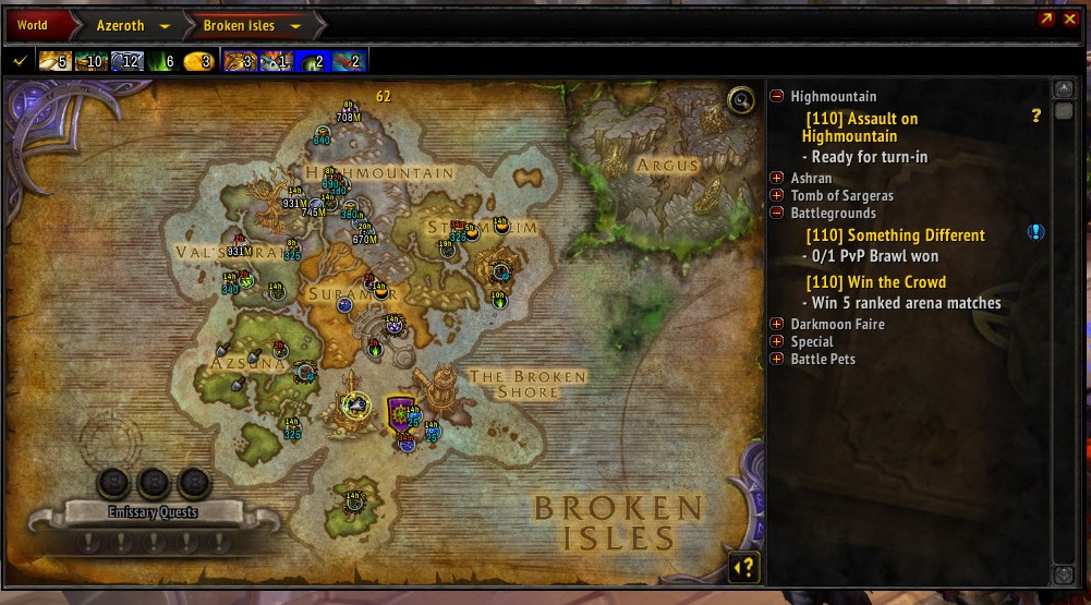 Adds reward icons and numbers such as Artifact Power to the quest pins on the world map. It also adds these pins to the continent map, making it easy to plan your questing route. Pins can be filtered and manually hidden.