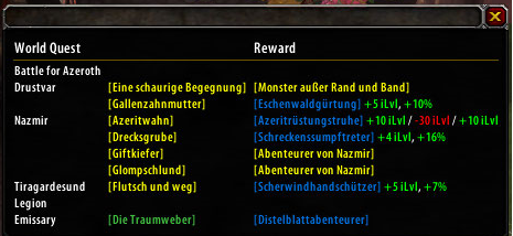 Additionally it tracks emissaries and mission tables from Warlords of Draenor, Legion and Battle for Azeroth.