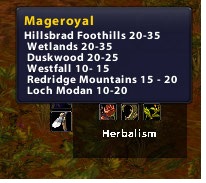 - Supports Mining, Herbalism and now Skinning!!! (Thanks Dridzt)