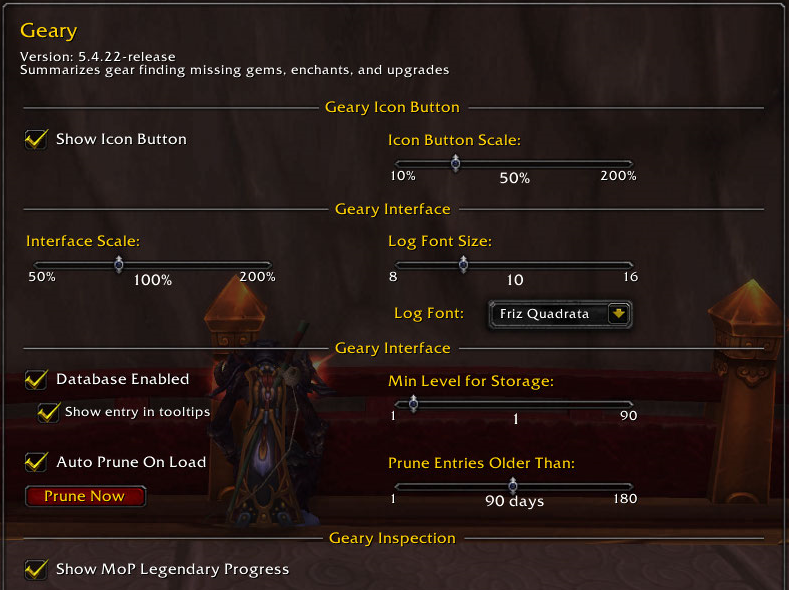 Geary is a lightweight addon to examine equipped gear of yourself and other players. Key features: