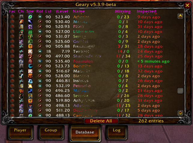 - Doubtful: Sync database entries with group, guild members, or specific players