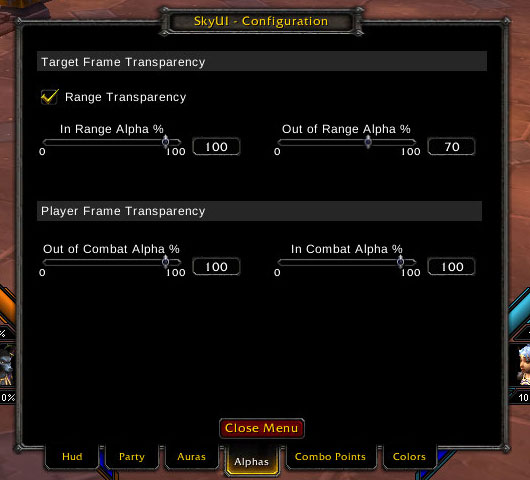- The configuration menu will close upon entering combat. All changes will be stored and applied the next time the configuration menu is opened. Changes will NOT be saved if you exit the game before allowing the changes to be applied. This makes it more taint-friendly.