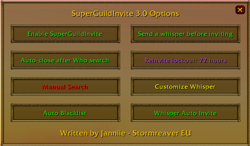 SuperGuildInvite is an AddOn developed to aid any person who wishes to invite new players to their guild