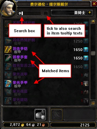 - Example: You search items with spell power, then write "spell power" and the list show the relevant items.