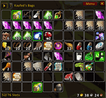 You now have two custom groups, herbs and bankherbs. Presumably you keep massive herb bags in slots 3 and 4, and are making lots of money from this because you have the two most expensive bank slots as well (10 and 11).