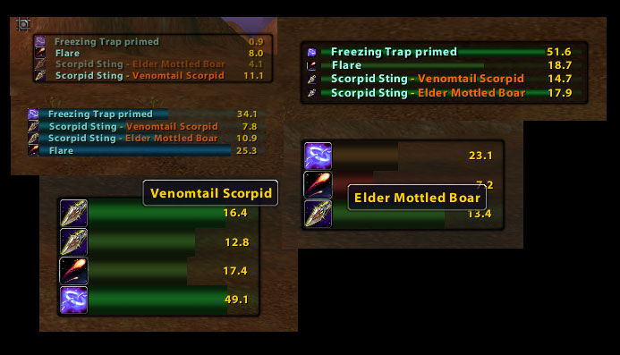 Currently, this mod will time the duration of various hunter abilities in a draggable frame. The tooltips that show which mob the timer is affecting are only shown when the ctrl key is pressed.