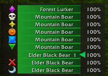 - Optional tooltip shows mob level and type, health percentage, current target, status and Magic Marker assignment. It also lists all players targeting the mob.