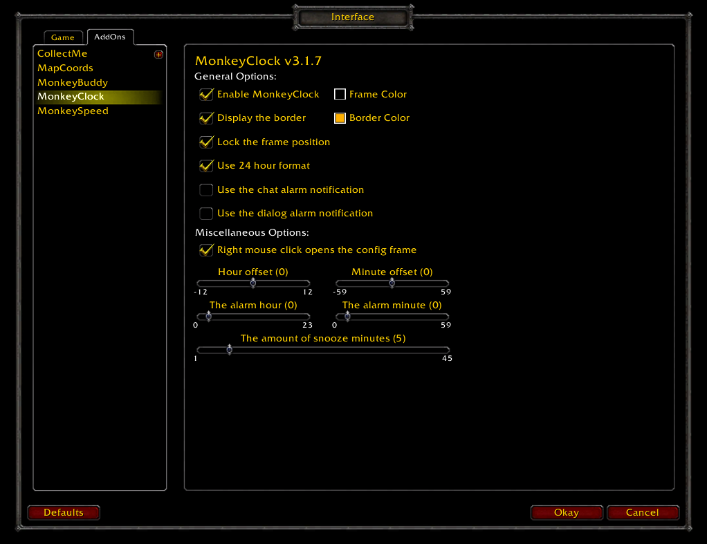 The MonkeyClock AddOn for WoW displays the time in a nice customizable frame.