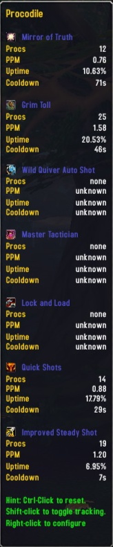 Gathers statistics on certain chance-on-use spells, also known as procs.