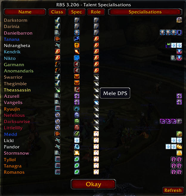 - Role information and main tank lists are parsed to be able to know who is a tank. A button, disabled by default, shows whom RBS thinks is a tank based on tank list, spec and roles.