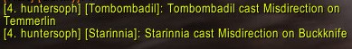 - Automatic broadcasting on successful Misdirection/Tricks cast, even from within macros