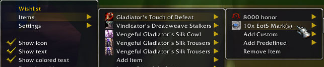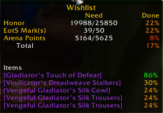Ability to track custom items Use "/wishlist requirements items add [link]" to add custom items to use as requirement