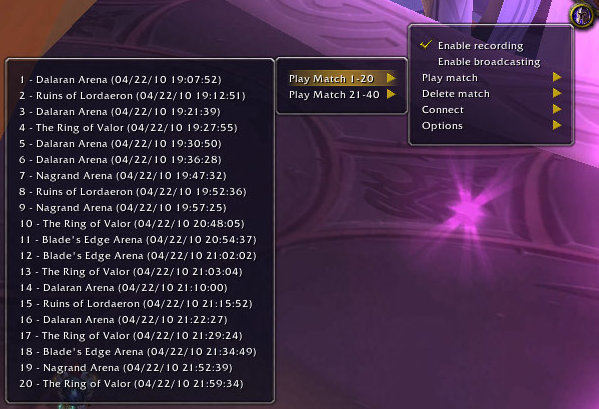 AAV is an arena replay addon, that lets you record or even broadcast arena matches. These arena matches can be viewed within WoW, while doing your daily quests, raids or just idling in Dalaran. It's optimized to run in very good-performance.