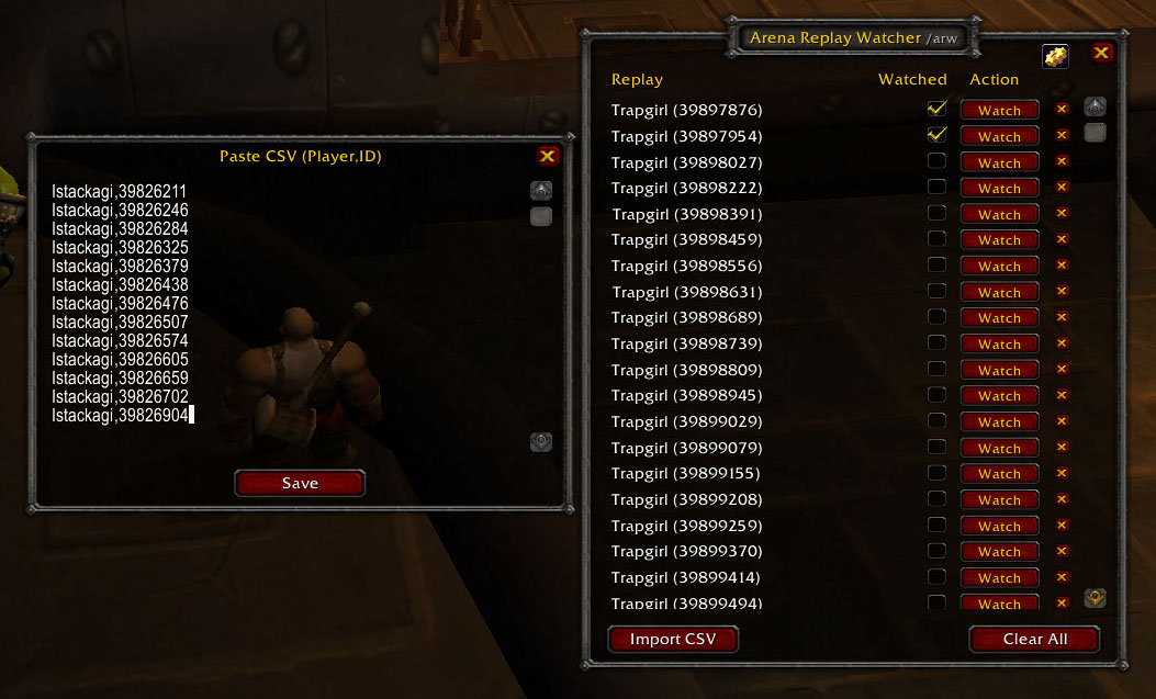 Player_Name,Match_ID) allowing you to queue dozens of matches at once (Excel file provided).GitGud Focus: Efficiently watch and analyze the entire match history of top players (Warriors, Hunters, Priests, etc.) to rapidly understand positioning, cooldown usage, and execution.