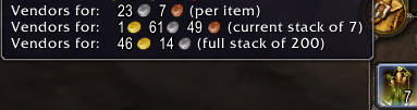 Displays vendor value per item, per stack, and full-stack max on tooltips. Works in bags, vendors, AH, chat links, everywhere.