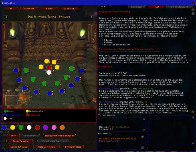 I've set up a video guide for raidleaders to show all the functions containing in BossTactics. You can find it on youtube:Part 1 (Without Music)Part 2 (Without Music)Bugs